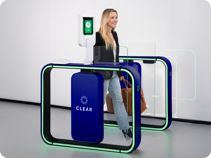 CLEAR is bringing eGates to U.S. airports for the first time ever—an innovative, automated technology that strengthens security and enhances the customer journey. Simply scan your boarding pass when you enter the CLEAR+ Lane and walk straight up to the eGate, where you will verify with our face-first technology. Then, go directly to bag screening—no need to stop at a CLEAR Pod or TSA podium.